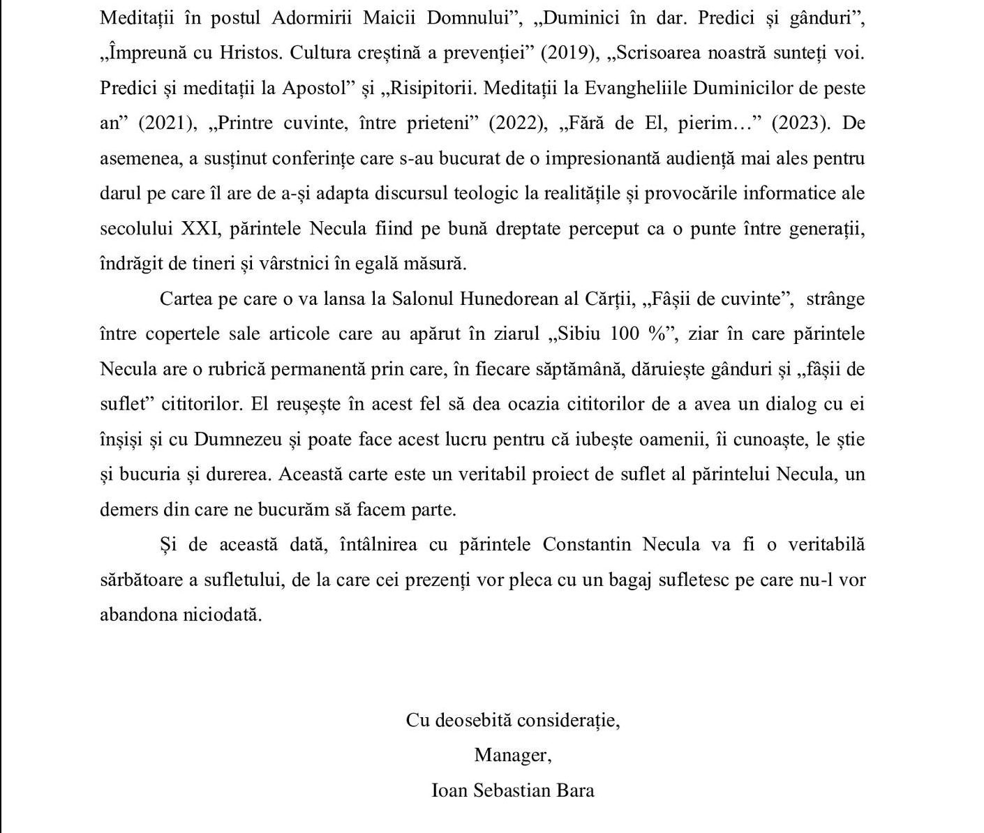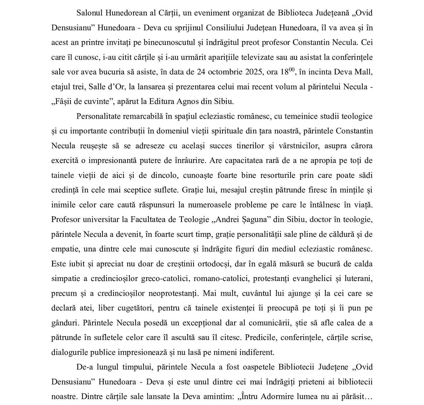 „Fâşii de cuvinte”, o nouă carte semnată Pr. Constantin Necula, se lansează la Salonul Hunedorean al Cărţii