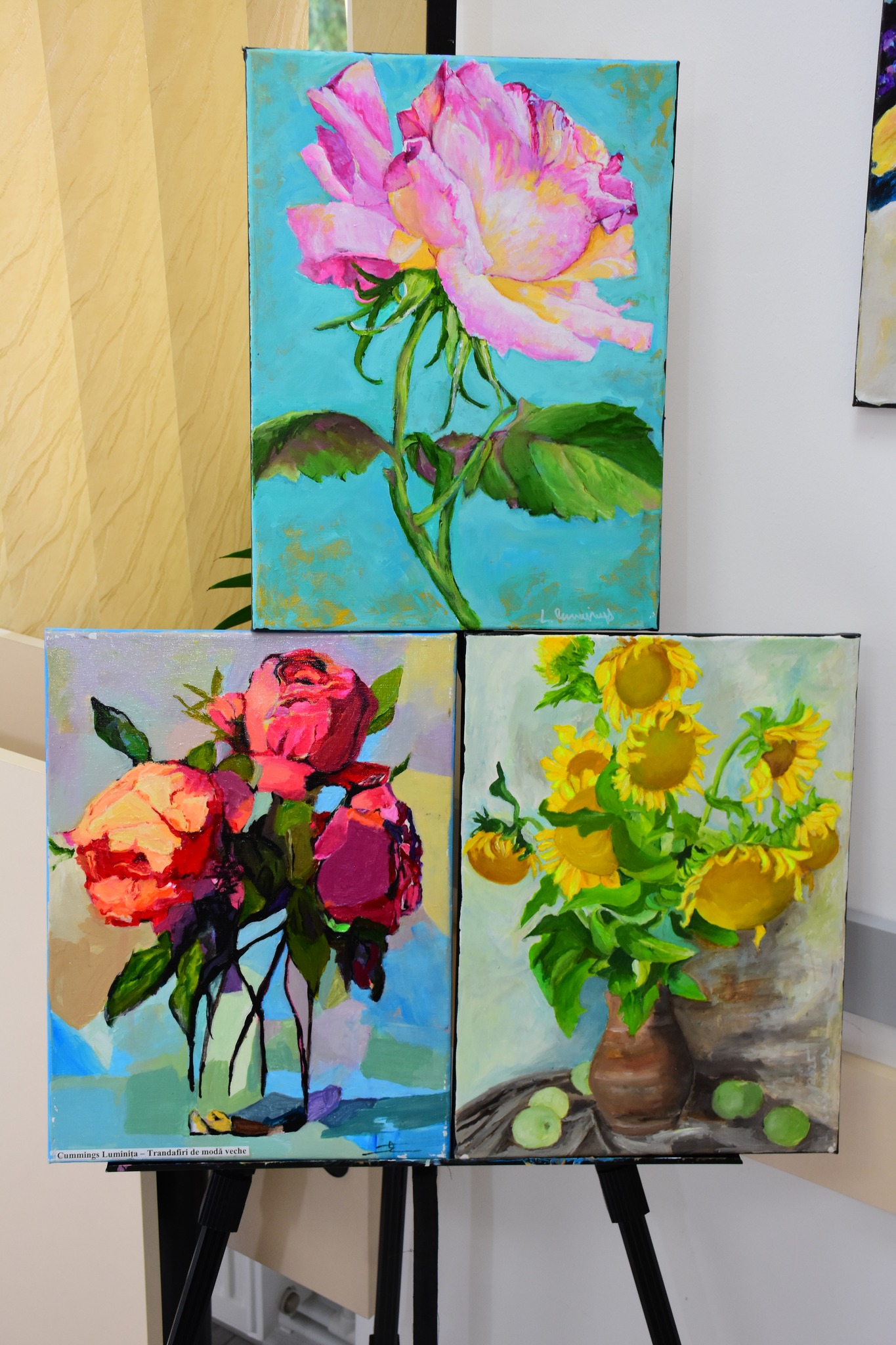Luni, începând cu ora 16:30, în incinta Sălii Biblionet a bibliotecii noastre, a avut loc vernisajul expoziției de pictură „Dincolo de petale”, realizată de Luminița Cummings, membră a Clubului de Arte Plastice „Curcubeu”.