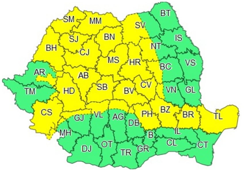 COD GALBEN: joi, 14 mai, orele 6.00 – 23.00