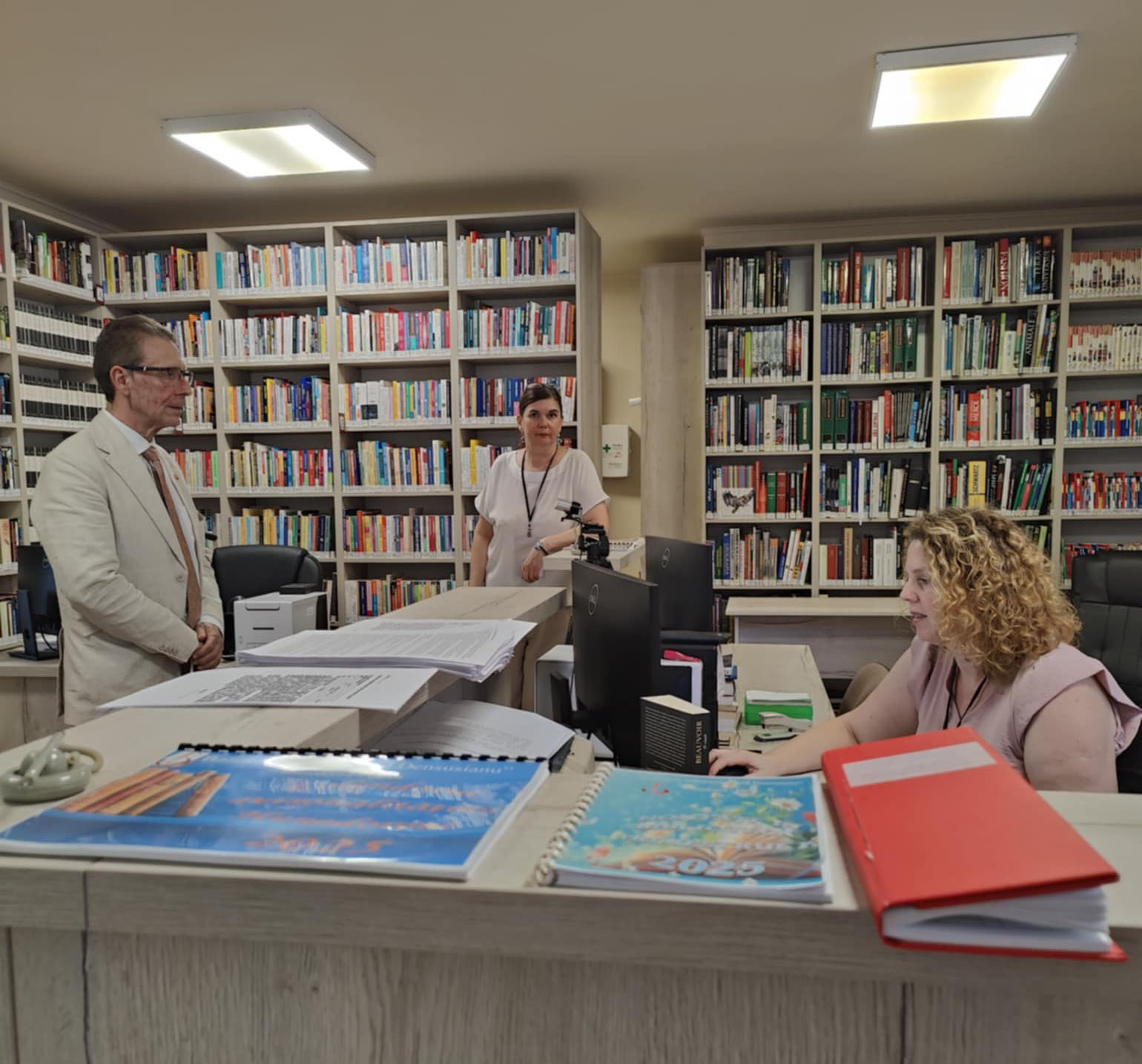 În Sala de lectură, domnului consul i-a fost făcut un permis de bibliotecă, gest simbolic care sperăm să rămână o amintire frumoasă a vizitei. Au fost interesați de fondul nostru de carte veche, iar la plecare, domnul consul a remarcat cu interes Dicționarul aromân, aflat printre celelalte dicționare expuse pe rafturi.