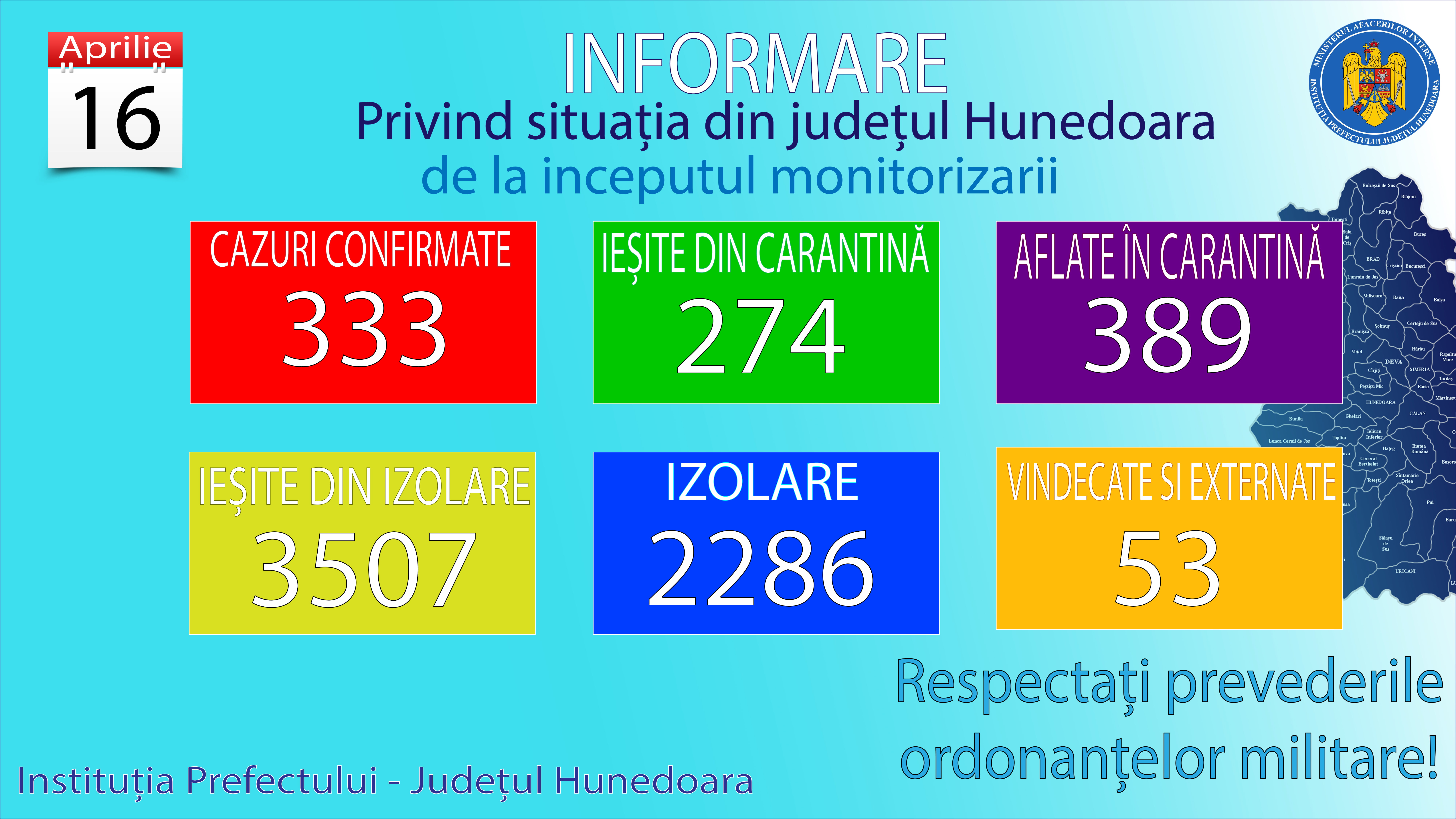 Situaţia actualizată pentru judeţul Hunedoara – 16 aprilie 2020