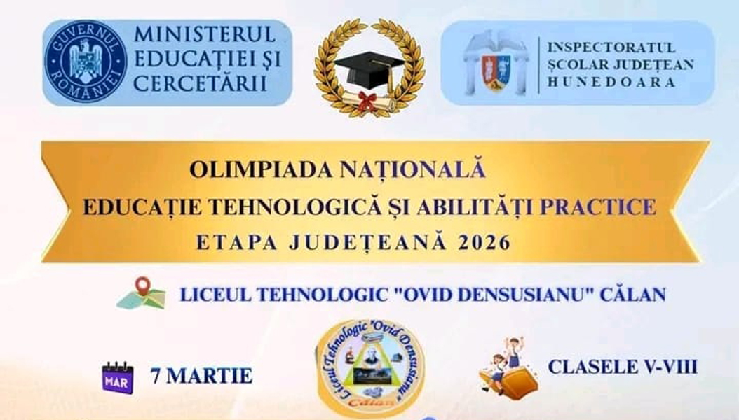 „Ideile prind viață atunci când îndrăznești să creezi, să experimentezi și să construiești viitorul cu propriile mâini.” Sub acest îndemn inspirațional se va desfășura, în data de 7 martie 2026, etapa județeană a Olimpiadei Naționale de Educație Tehnologică și Aplicații Practice, competiție dedicată elevilor pasionați de domeniul tehnologic și de aplicarea practică a cunoștințelor dobândite la clasă.