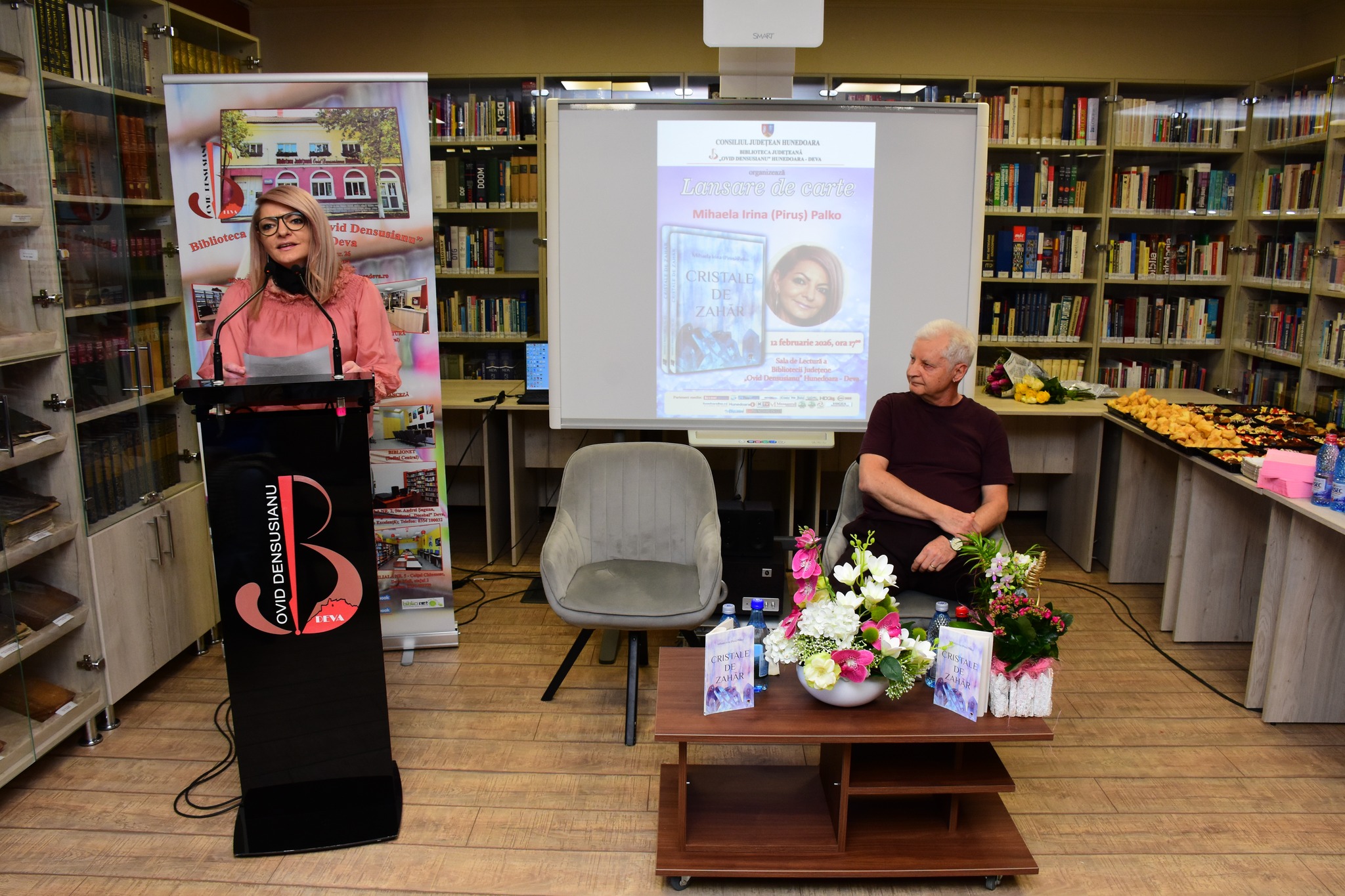 Biblioteca Județeană „Ovid Densusianu” Hunedoara – Deva, cu sprijinul Consiliului Județean Hunedoara, a organizat în luna februarie 2026, la Sala de Lectură, o întâlnire pusă sub semnul poeziei, al atmosferei pline de lirism: după volumul de debut, din anul 2019, intitulat „Am alergat și-am stat în gândul meu”, Mihaela Irina (Piruș) Palko a venit în fața cititorilor cu volumul „Cristale de zahăr”, ce cuprinde versuri și proză. Volumul pune în lumină pasiunea pentru literatură a autoarei, o pasiune născută încă din copilărie.