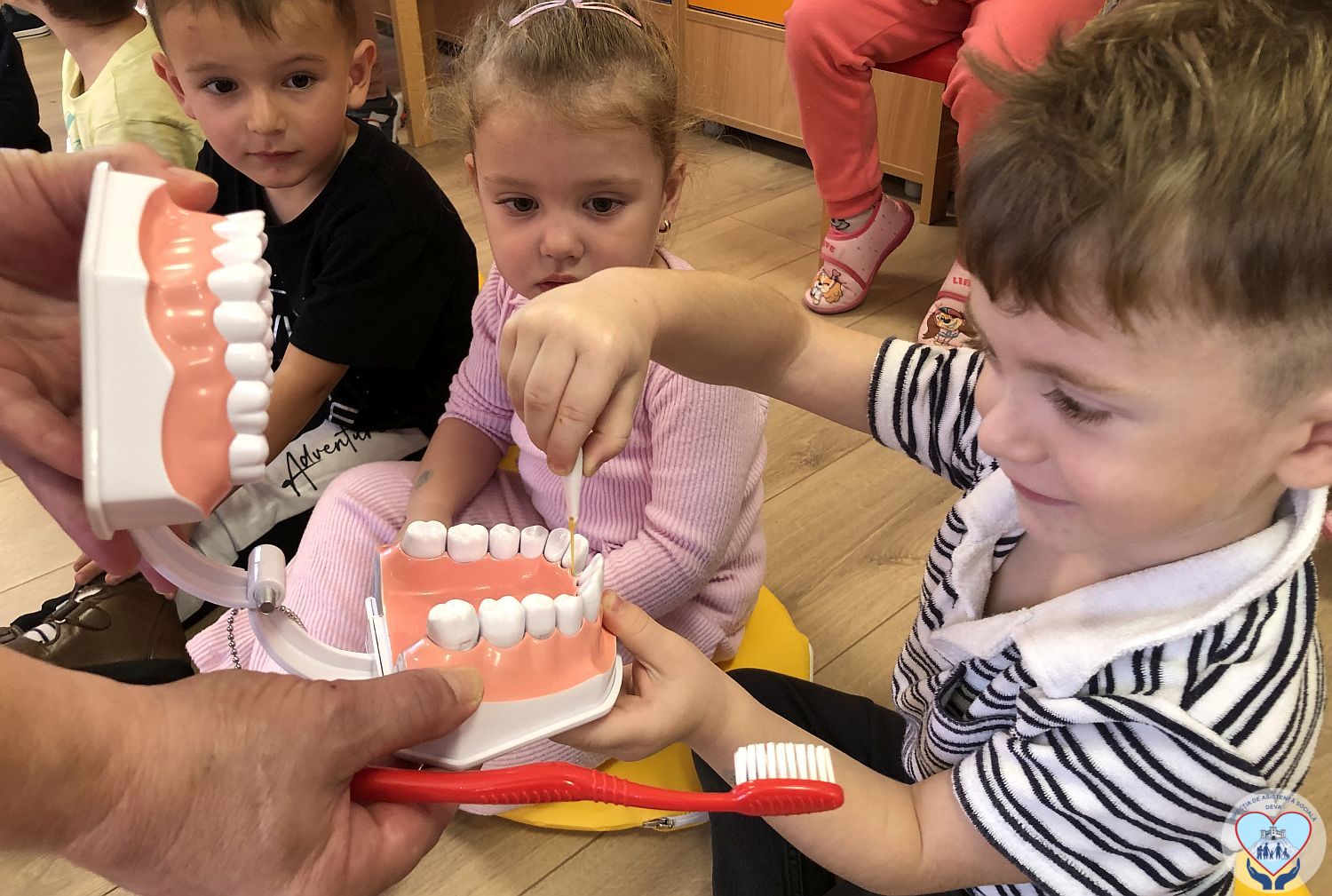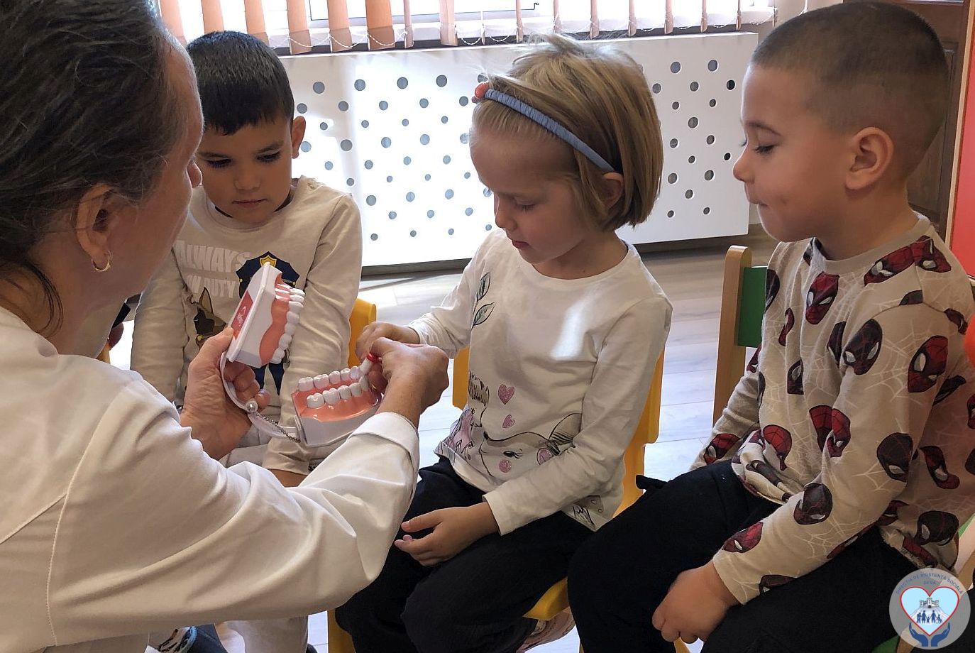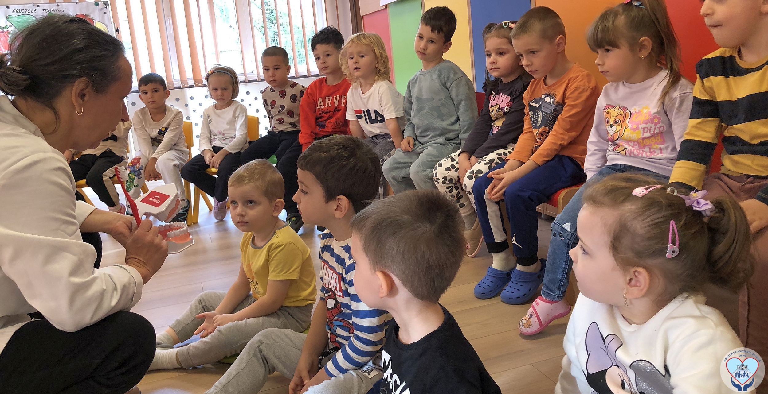 Cu ajutorul medicului dentist, copiii au testat, pe un mulaj educativ, modul corect de periere a dinților și au răspuns la întrebări pe tema igienei și sănătății orale.