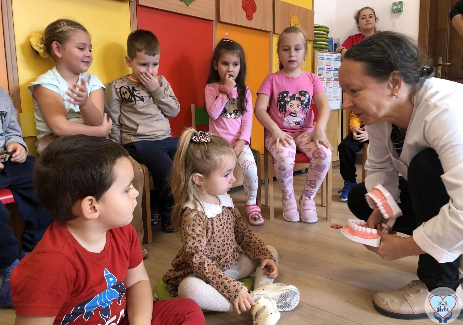 Peste 30 de copii, cu vârste între 3 și 6 ani, și educatorii lor au participat, luni, 13 octombrie 2025, la o activitate inedită pe tema sănătății orale, susținută de stomatologul Anca Kuțaba, de la Cabinetul școlar de medicină dentară nr. 1.
