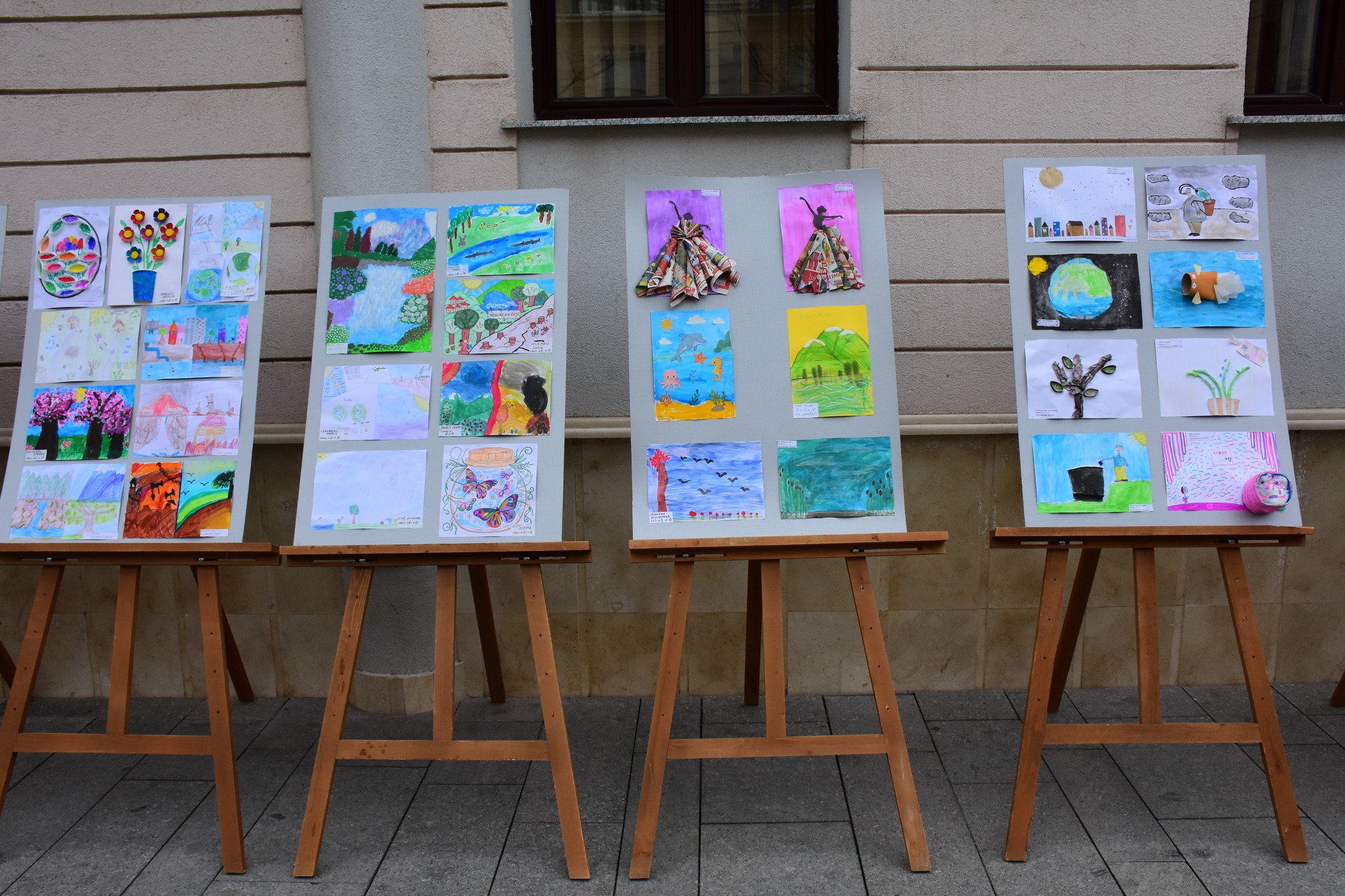 Încă de pe stradă, unde au fost expuse zeci de panouri cu lucrările celor mici, participanții au fost îndrumați spre curtea bibliotecii. Aici, pe rampă, copiii au defilat și și-au prezentat costumele, fiecare apariție fiind urmărită cu emoție și mult interes, părinții surprinzând în imagini fiecare moment.