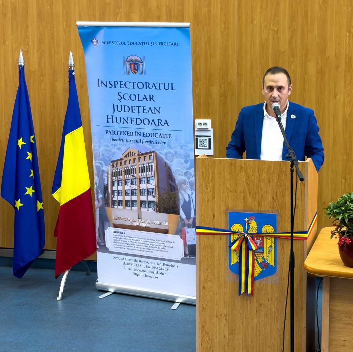 În intervenția sa, viceprimarul 𝗦𝗼𝗿𝗶𝗻 𝗧𝘂𝗱𝗼𝗿 𝗟𝗮𝘃𝘂 a evidențiat rolul municipiului Deva și al administrației publice locale în susținerea educației și a inovării: