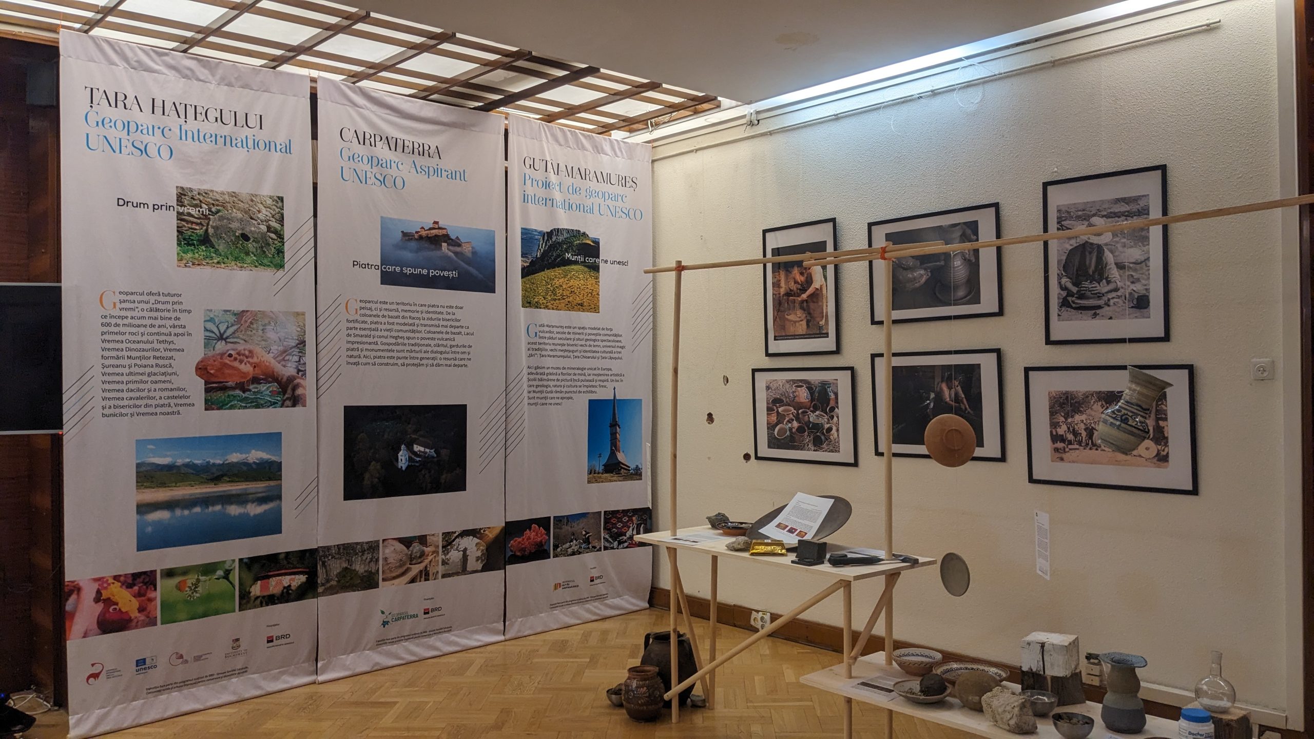 Geoparcurile Internaționale UNESCO Țara Hațegului și Ținutul Buzăului, geoparcurile aspirante UNESCO Oltenia de Sub Munte și Carpaterra, precum și proiectele de geoparc UNESCO Gutâi – Maramureș și Dobrogea Chimerică, reunite în cadrul Rețelei Geoparcurilor din România, aduc în expoziție obiecte și povești care devin o invitație de a descoperi, proteja și valorifica patrimoniul geologic și cultural din țara noastră.