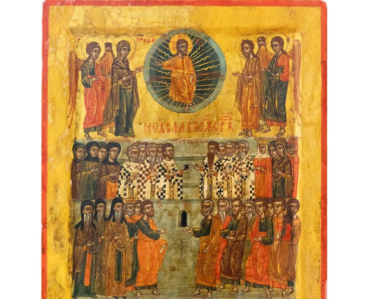 Alături de aceasta, licitația aduce în prim-plan o altă piesă de importanță muzeală: icoana „Duminica Tuturor Sfinților”, care provine dintr-o prestigioasă colecție și are un preț de pornire de 5.000 de Euro. Iată liniile importante ale parcursului său istoric: până în 1964, icoana s-a aflat în colecția reputatului medic și colecționar dr. Ioan Dumitrescu-Popovici, pentru ca ulterior să fie sechestrată de autoritățile comuniste și integrată, pentru mai bine de patru decenii, în patrimoniul Muzeului Național de Artă al României. Abia în 2025, lucrarea a fost retrocedată moștenitorilor familiei, reintrând astfel în circuitul privat.