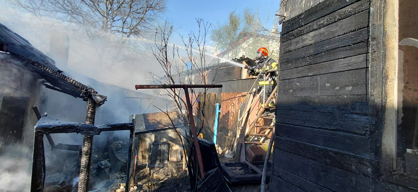 Au ars acoperișul casei și o anexă de aproximativ 20 de metri pătrați, iar cauzele izbucnirii flăcărilor sunt în curs de stabilire.