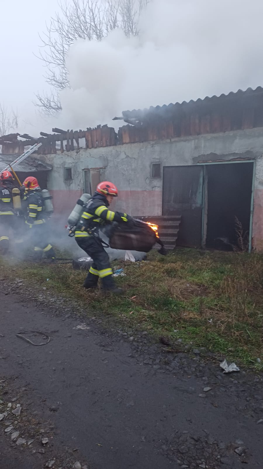 La sosirea celor 2 echipaje de intervenție flăcările se întindeau pe o suprafață de aproximativ 40 de metri pătrați ai construcției. Misiunea pompierilor a fost dificilă pentru că în interiorul magaziei, au găsit o butelie de aragaz aflată în interiorul focarului. Echipajele au acționat conform procedurilor, au răcit recipientul și apoi au extras butelia, fără probleme.