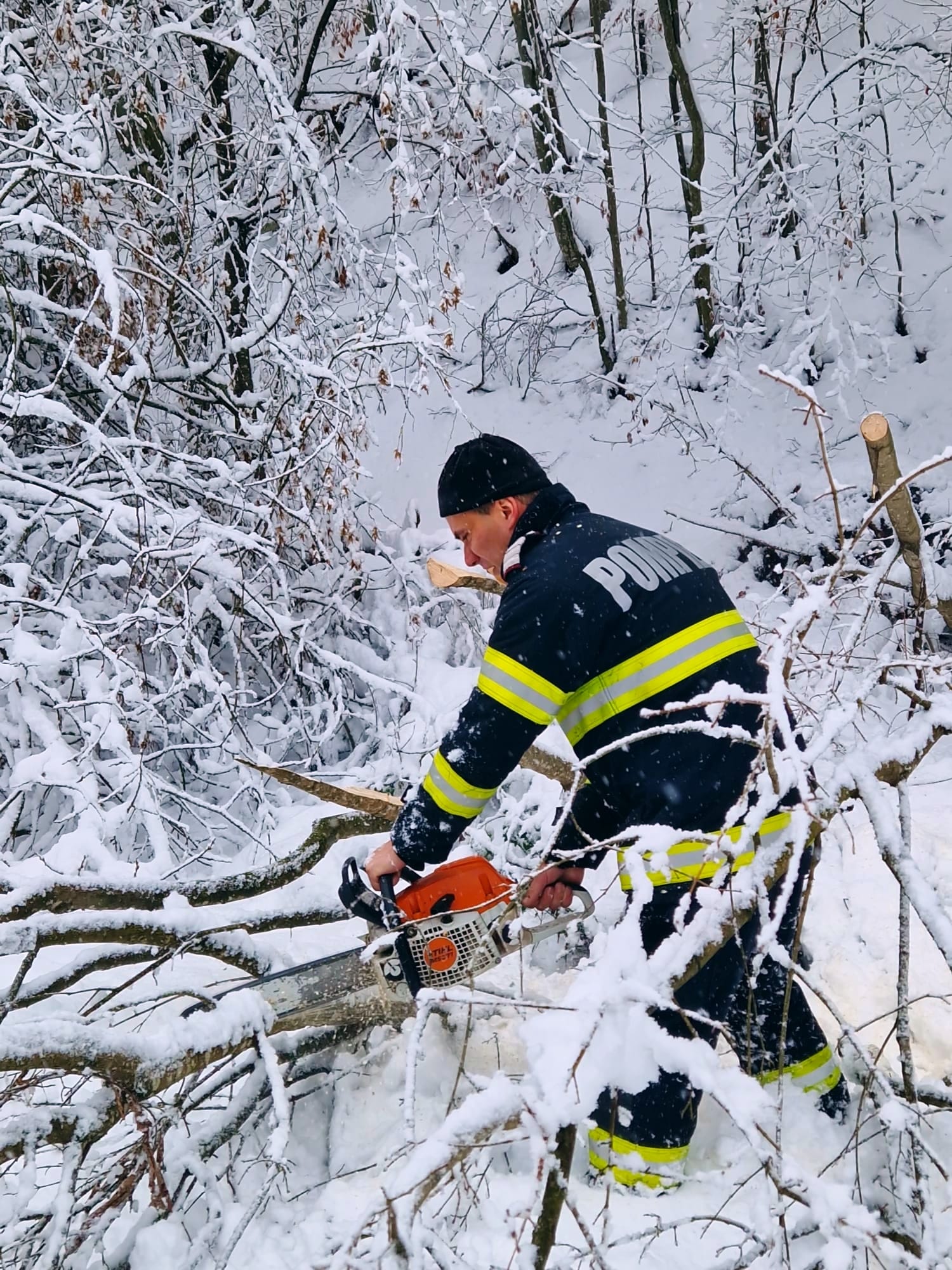 Echipajele noastre au acționat pentru segmentarea și degajarea materialului lemnos și astfel, traficul a fost reluat.