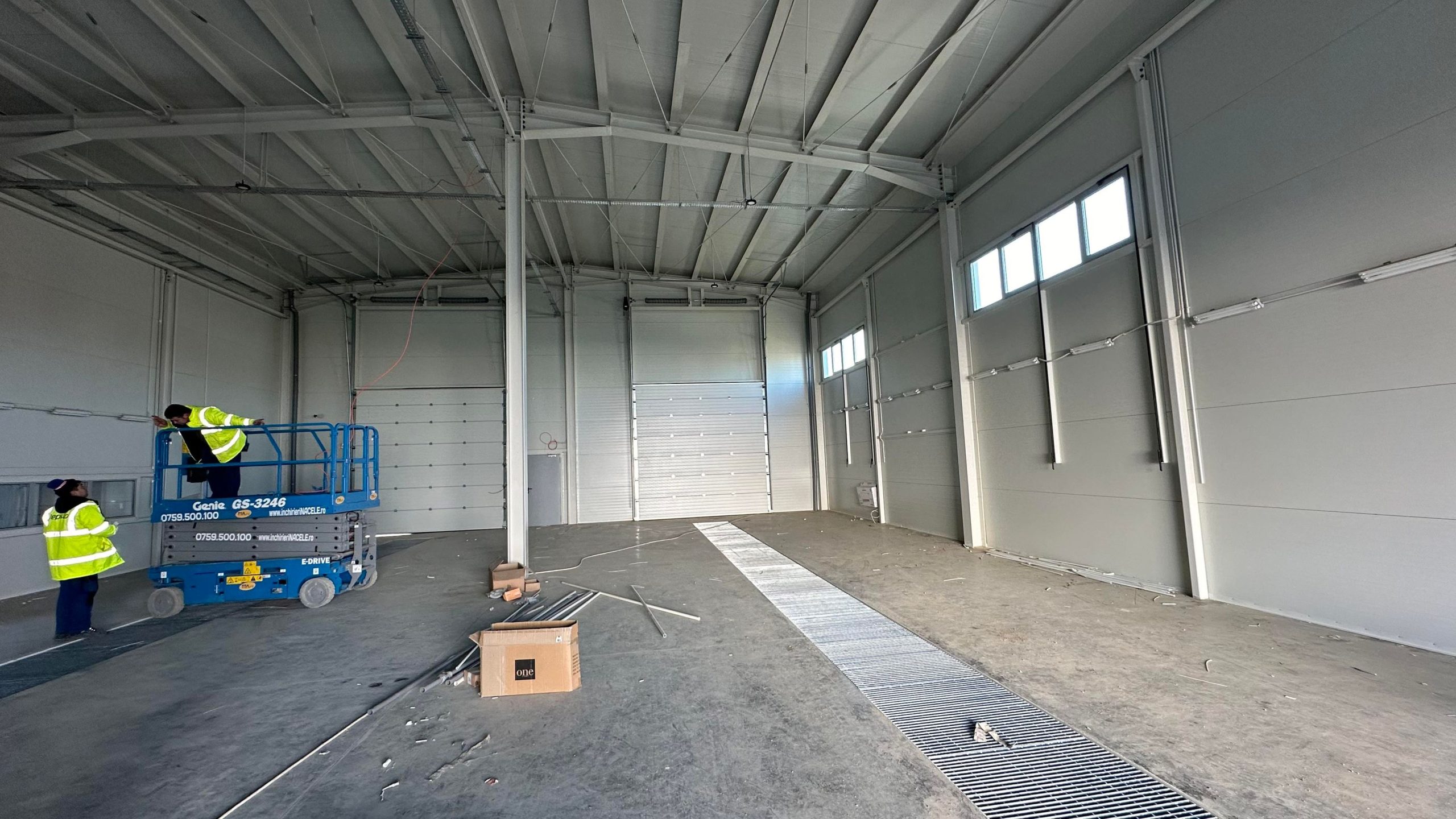 La clădirea administrativă s-au finalizat toate lucrările de instalații interioare și amenajări interioare și se lucrează la ultimele retușuri.