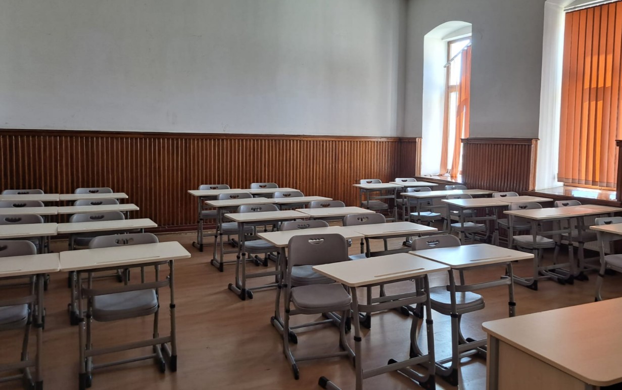 • Pupitre individuale cu scaune pentru elevi (967 bucăți pentru învățmântul primar, gimnazial și liceal), catedre, cuiere, dulapuri pentru materiale didactice