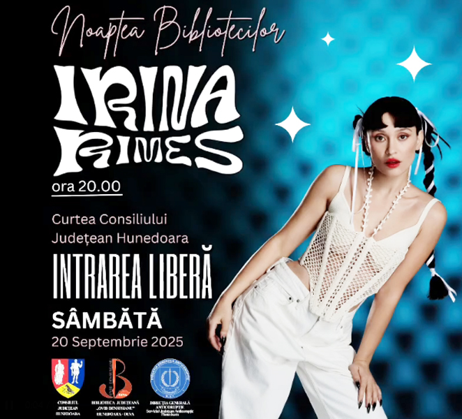 Atracția serii va fi, fără îndoială, concertul Irinei Rimes, programat la ora 20:00. Una dintre cele mai îndrăgite artiste ale momentului, cu piese care au cucerit topurile muzicale, Irina Rimes va aduce pe scena din curtea Consiliului Județean Hunedoara un show de neuitat, combinând emoția versurilor cu energia unui spectacol live de excepție.