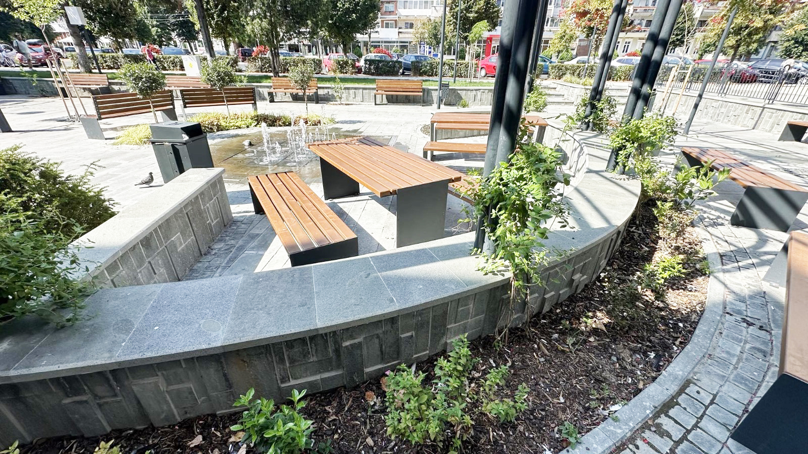 Pentru a marca intrările în scuar, s-a plantat vegetație și s-au montat bănci care oferă un ambient plăcut și relaxant. De asemenea, în zona mediană a scuarului, au fost amplasate jardinière și arbori, mobilier urban, completate de fântâni de pardoseală și pergola dispuse radial, creează centre de interes care îmbunătățesc estetic zona.