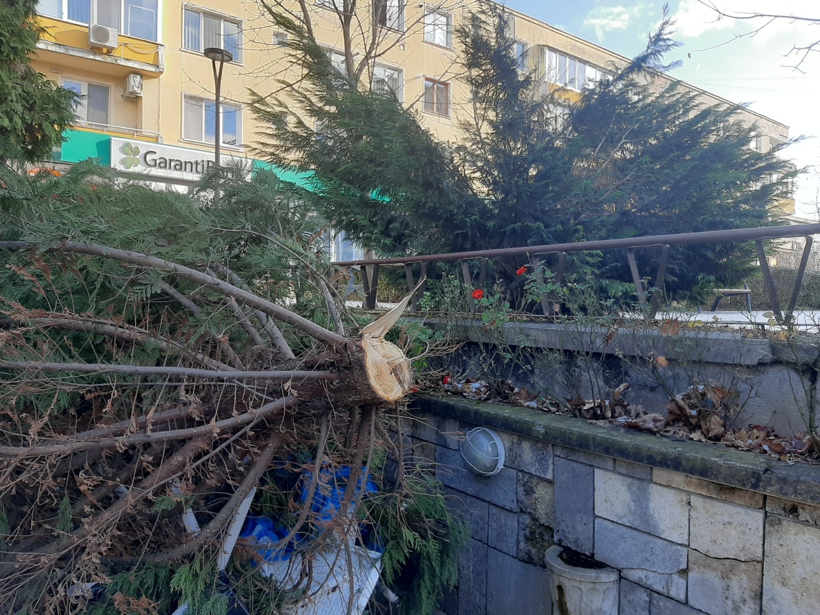 Vântul puternic a dărâmat copacii peste terasa localului și pe spațiul pietonal, nefăcând din fericire victime.
