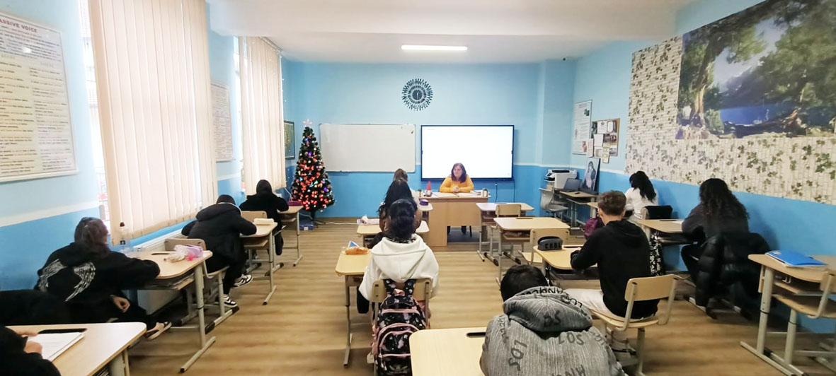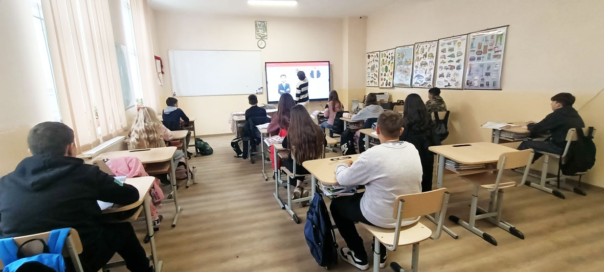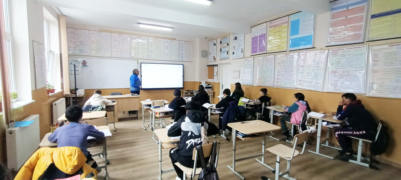 Atmosfera educațională este completată de panouri informative, postere didactice, rafturi cu materiale, precum și elemente vizuale care transformă sala într-un spațiu de învățare modern și funcțional.