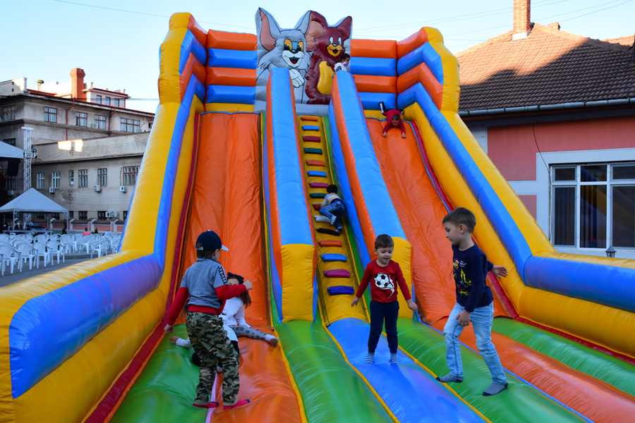 Sub atractivul generic „Biblioland”, copiii au putut să se joace în voie, într-un spațiu amplu, unde un tobogan gonflabil, un taur gonflabil, baloane și alte surprize au făcut deliciul sutelor de mici prieteni ai bibliotecii noastre care s-au bucurat din plin de aceste momente, „îndulcite” și de vata de zahăr oferită gratuit.