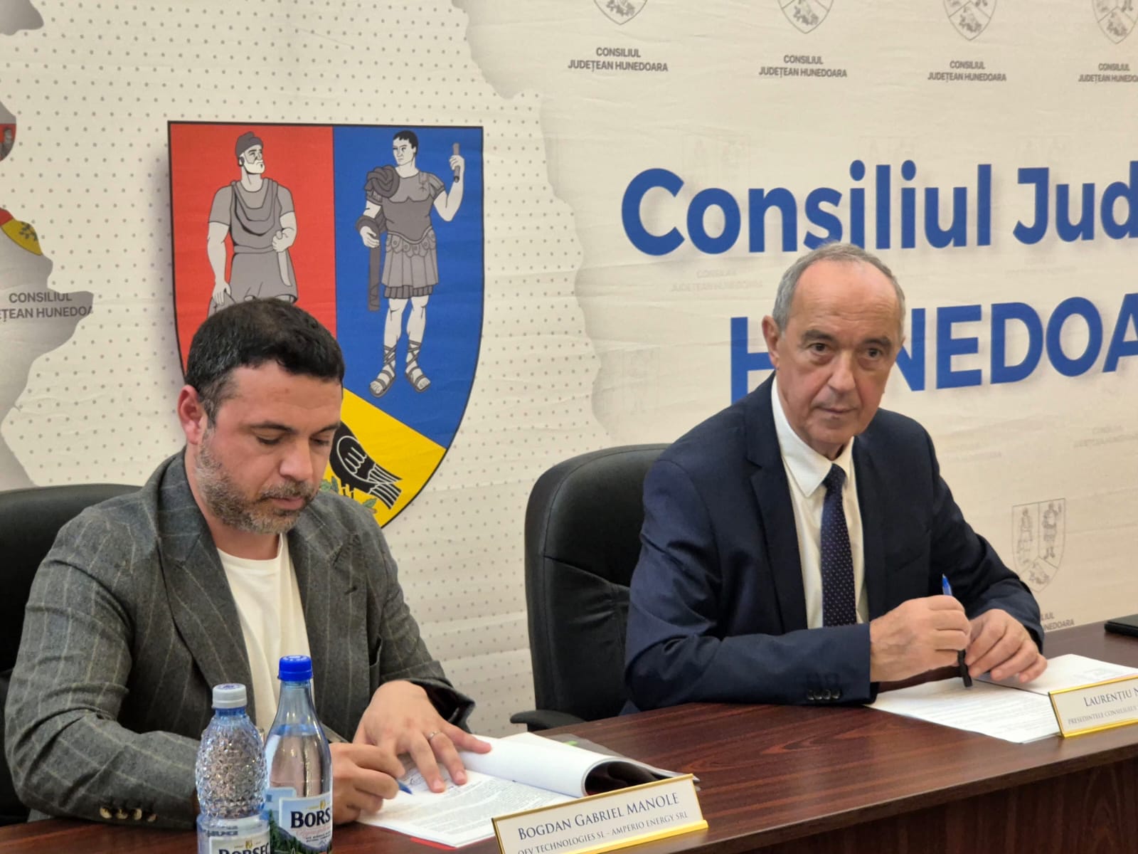 La semnarea contractului a fost prezent, alaturi de Laurentiu Nistor, preşedintele Consiliului Județean și Bogdan-Gabriel Manole, reprezentantul asocierii QEV Technologies SL – Amperio Energy SRL, compania desemnată să furnizeze cele șase vehicule electrice care vor ajunge în scurt timp în localitățile Orăștioara de Sus, Hărău, Teliucu Inferior, Sălașu de Sus, Romos și Sarmizegetusa. Acestea vor completa flota deja existentă de microbuze electrice, livrate anterior în 23 de comune din județ.