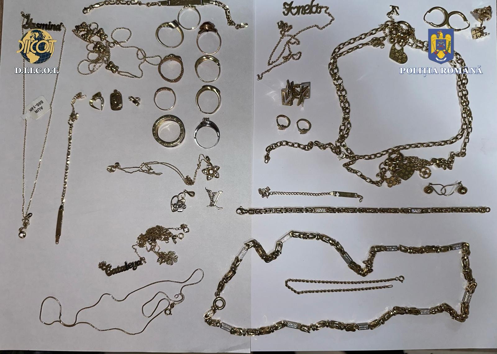 Pe parcursul perchezițiilor domiciliare au fost descoperite și ridicate diferite cantități de substanțe pulverulente și vegetale, comprimate de alprazolam, grindere, cântare de precizie, obiecte purtând urme de substanță, peste 50 de arme albe (cuțite, săbii, macete și topoare), peste 175.000 de lei, 34.300 de euro, 1.500 de lire sterline și 1.400 de franci elvețieni, precum și alte mijloace de probă.