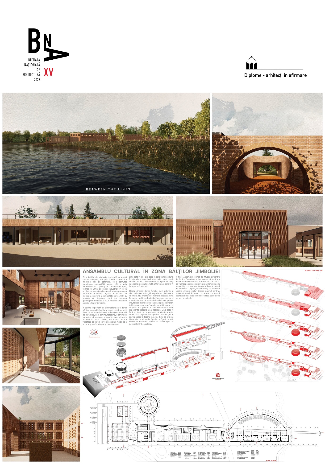În cadrul aceleiași ceremonii, absolventele FAUT Laura Argeșeanu și Jacqueline Iancu sunt la rândul lor menționate cu lucrarea „Ansamblu cultural în zona bălților Jimbolia”, coordonată de conf. dr. arh. Cristian Blidariu. Aceeași lucrare obține, o lună mai târziu, premiul secțiunii Cercetare prin arhitectură / Diplome de arhitectură în cadrul Anualei de Arhitectură București. Anuala de Arhitectură București (AAB) este unul dintre cele mai importante evenimente de arhitectură contemporană din România și din Sud-Estul Europei, fiind organizată de Filiala Teritorială București a Ordinului Arhitecților din România. Diploma a fost realizată ca o concluzie a parteneriatului internațional ERASMUS + Triplex Confinium, coordonat de FAUT, și a avut ca principal obiectiv crearea unei legături funcționale și tangibile cu localitatea Jimbolia și regiunea ei, prin intermediul căreia valorile culturale locale să fie revitalizate și promovate în arealul natural al fostei fabrici Ceramica/Bohn. Într-o varianta incipientă, de concept design, proiectul de diplomă a fost laureat cu premiul 1 la concursul internațional „Think Brick!”, competiție adresată la începutul anului 2022, studenților și a tinerilor profesioniști din România, Serbia și Ungaria. Link: https://www.anuala.ro/proiecte/2023/349/
