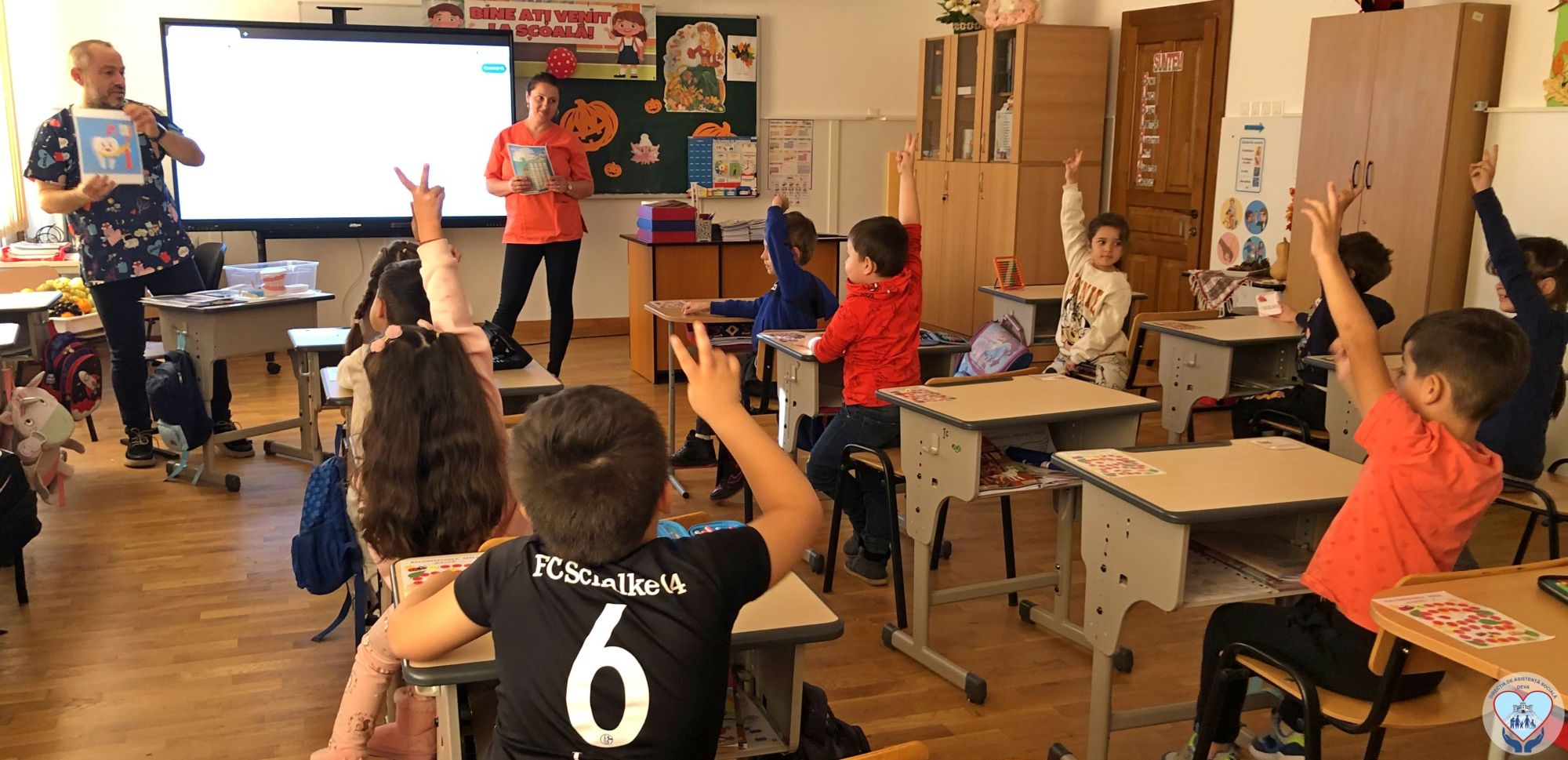 Peste 30 de elevi cu vârste între 6 şi 11 ani, de la Liceul Tehnologic Energetic “Dragomir Hurmuzescu” din Deva, au participat, luni, la o lecţie de educaţie pentru sănătatea orală, susţinută de medicul Răzvan Cozma, de la Cabinetul şcolar stomatologic nr. 3, care funcţionează în cadrul liceului.