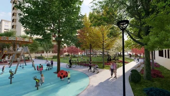 Unul dintre cele mai importante câștiguri ale proiectului îl reprezintă extinderea zonelor verzi. Suprafața totală de spațiu verde va crește de la 10.673 de metri pătrați la 13.212 metri pătrați, în timp ce suprafața construită se va reduce semnificativ, de la 211,8 metri pătrați la 111,10 metri pătrați.