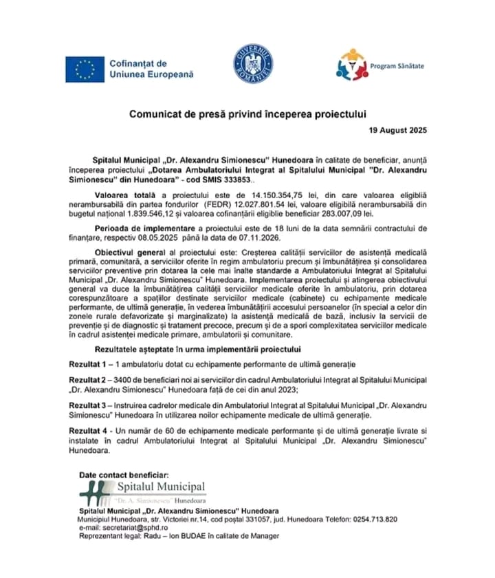 Spitalul Municipal Hunedoara își modernizează Ambulatoriul Integrat cu sprijin european