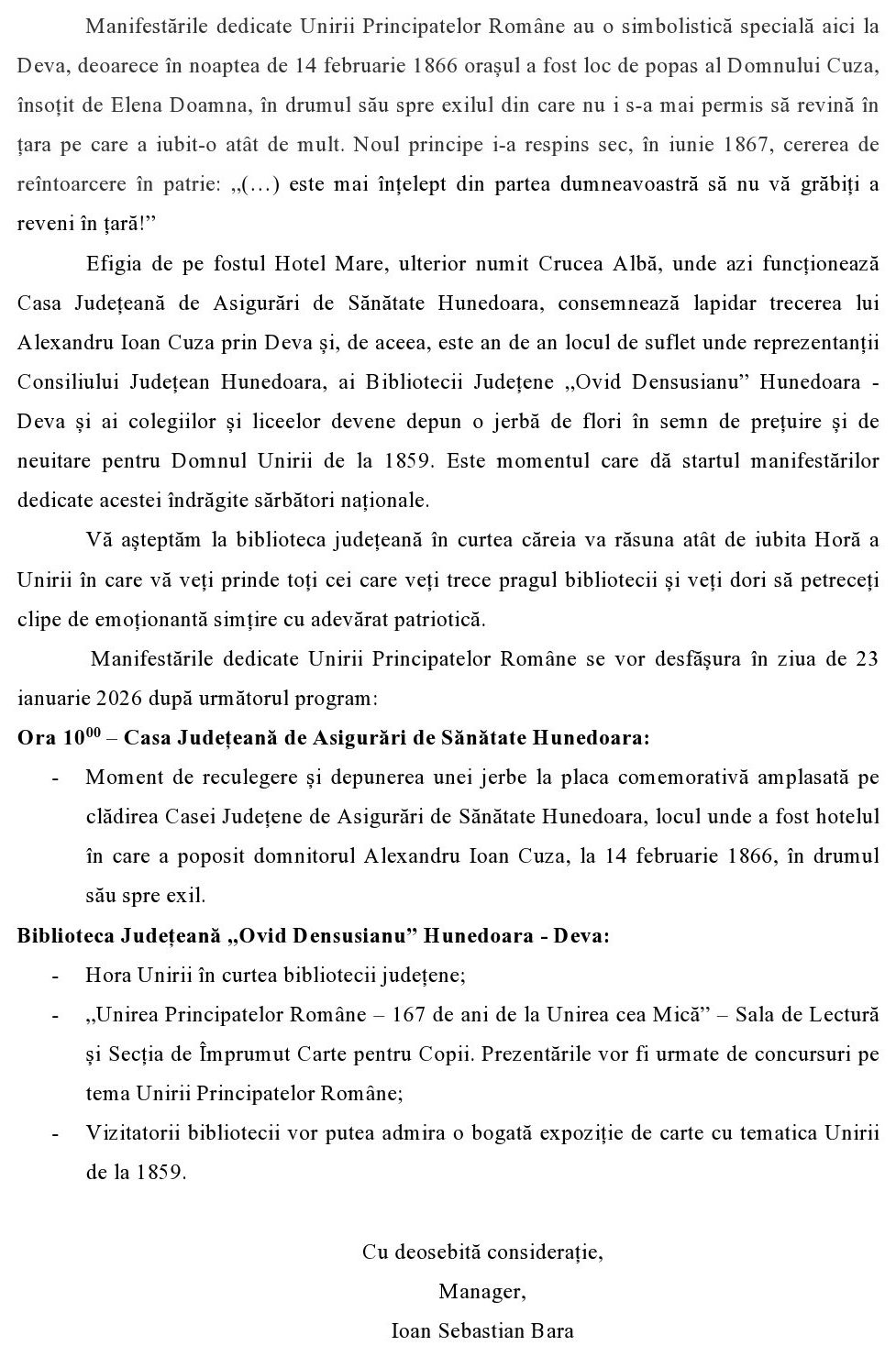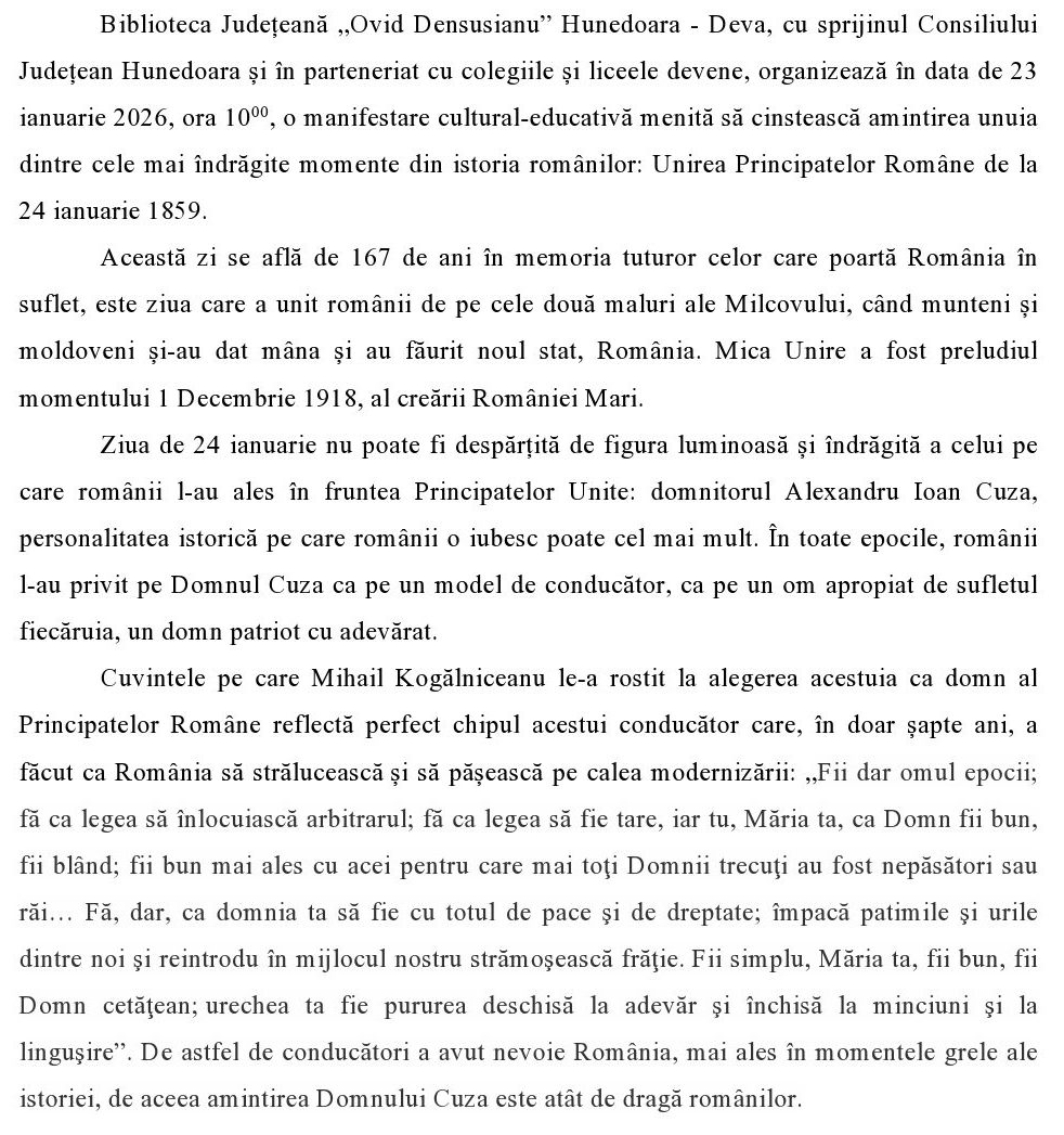 Unirea Principatelor Române, sărbătorită la Biblioteca Judeţeană